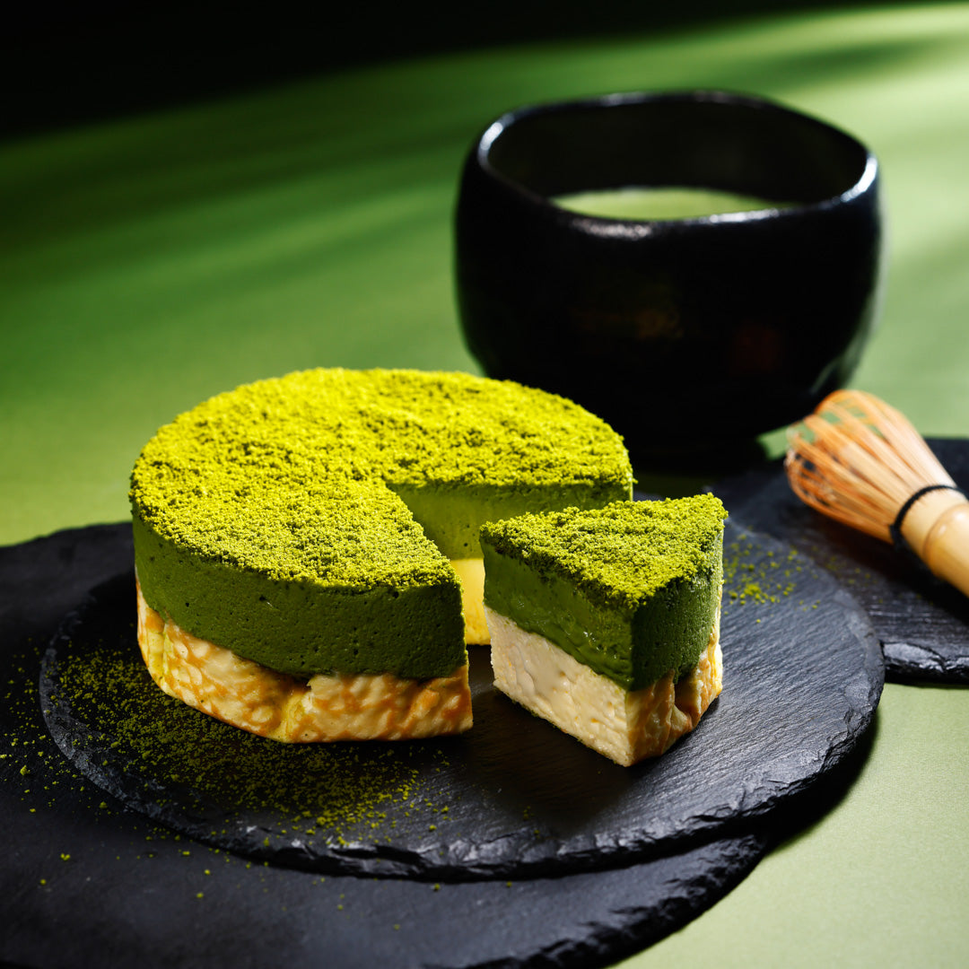 Our Matcha Milk Cheesecake brings together the gentle richness of our classic milk cheesecake with the vibrant character of fine Japanese matcha. The cake is layered with a smooth matcha mousse that offers a delicate balance of earthy bitterness and natural sweetness, creating a flavor that feels both refreshing and deeply satisfying. Crafted in Japan with carefully selected matcha, the cake delivers a clean and elegant finish that highlights the purity of the green tea. The creamy cheesecake base adds softness and harmony, allowing the matcha to shine while maintaining the light and graceful texture that defines Japanese style cheesecakes. This refined dessert is perfect for matcha lovers and for anyone who enjoys a peaceful moment with a thoughtful, beautifully balanced flavor. It pairs wonderfully with tea and brings a touch of calm and elegance to any occasion.