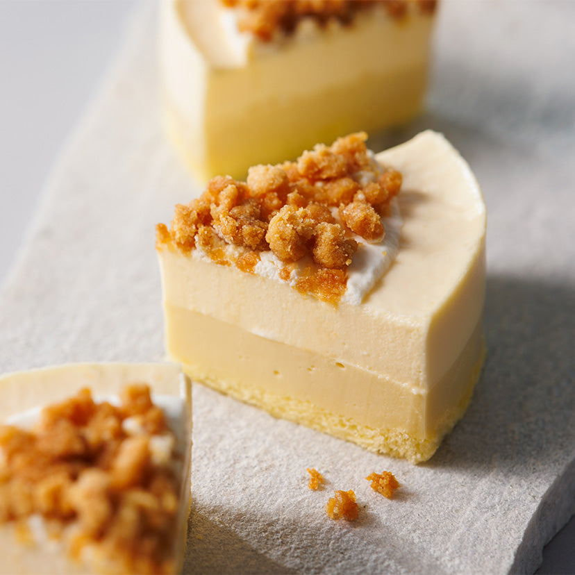 Our Mousse Fromage Cake is a light and airy creation that begins with a moist and delicately baked sponge base, layered with a rich gorgonzola cream and a smooth mascarpone mousse that highlights gentle and natural sweetness.